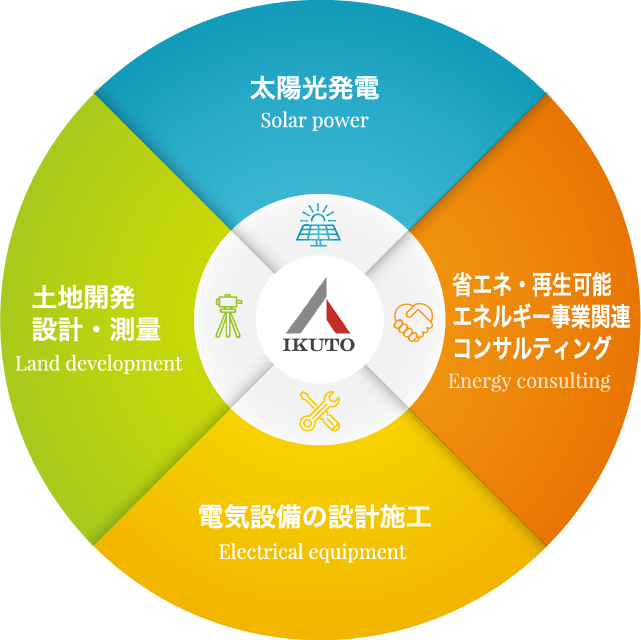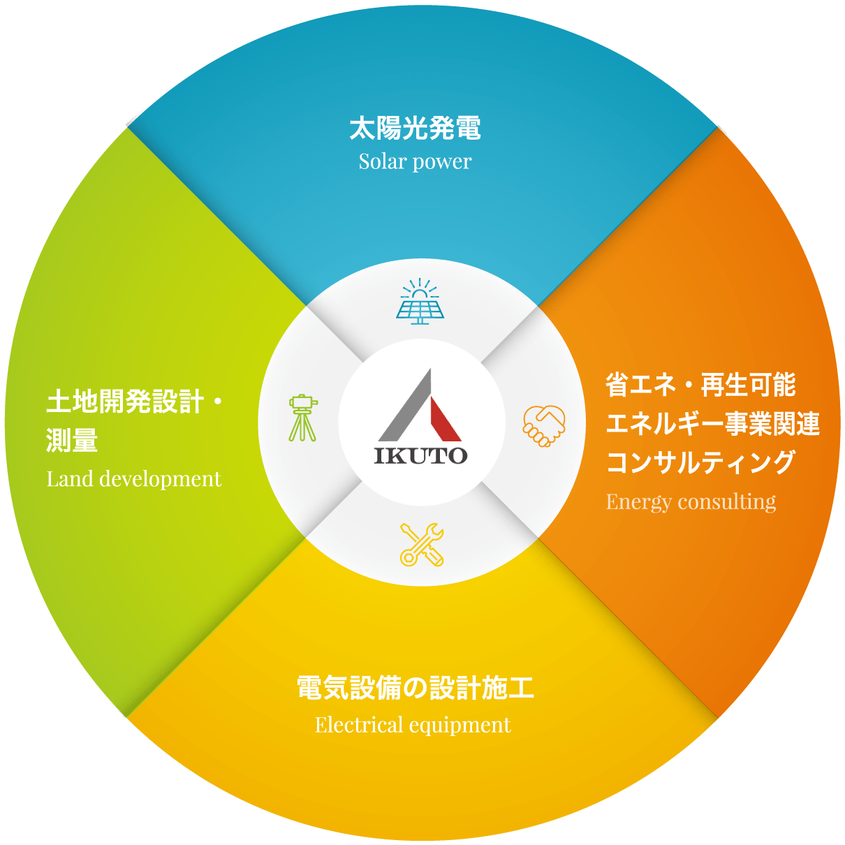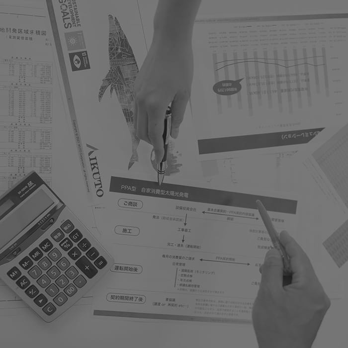 主に産業用の大規模、中規模の太陽光発電設備の企画提案、設計施工を行っております。近年は、太陽光で発電した電気を自ら消費する自家消費型太陽光発電、非常用電源(BCP対策)としての導入などを中心に、ご家庭用から企業様向けまで幅広いお客様に電気代コストの削減やお悩みを解決するご提案をしております。自家消費型太陽光発電においては、売電する太陽光発電設備より高度な専門知識を要しますが、弊社の熟練専門スタッフがお客様のベストプランニングで、ご提案から設計施工、メンテナンスまでのトータルサービスをワンストップでご提供致します。