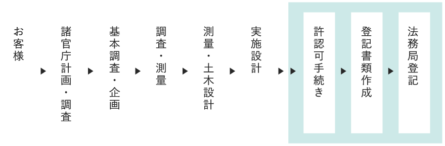 測量から土地開発に関わる造成設計を手がけております。 主には、工場や宅地分譲の造成設計、近年では太陽光発電所開発の造成設計を中心に受注しております。また、弊社は行政書士と土地家屋調査士事務所を併設しているため、官公庁への手続きも円滑に進めることができます。