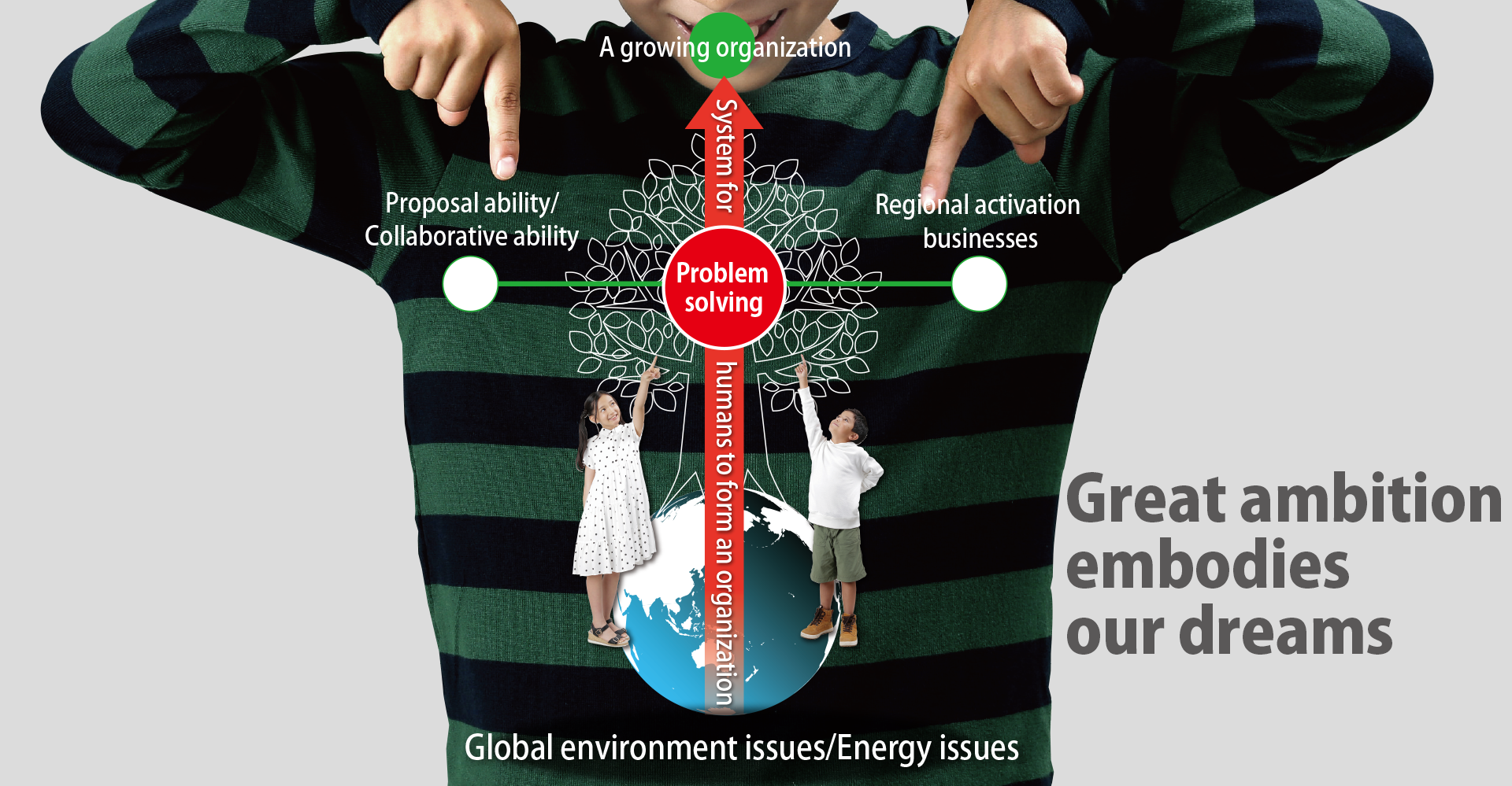 Management policyTo give priority to the prosperity and happiness of all people and to aim to be an organization which contributes to society with dreams and aspirations
