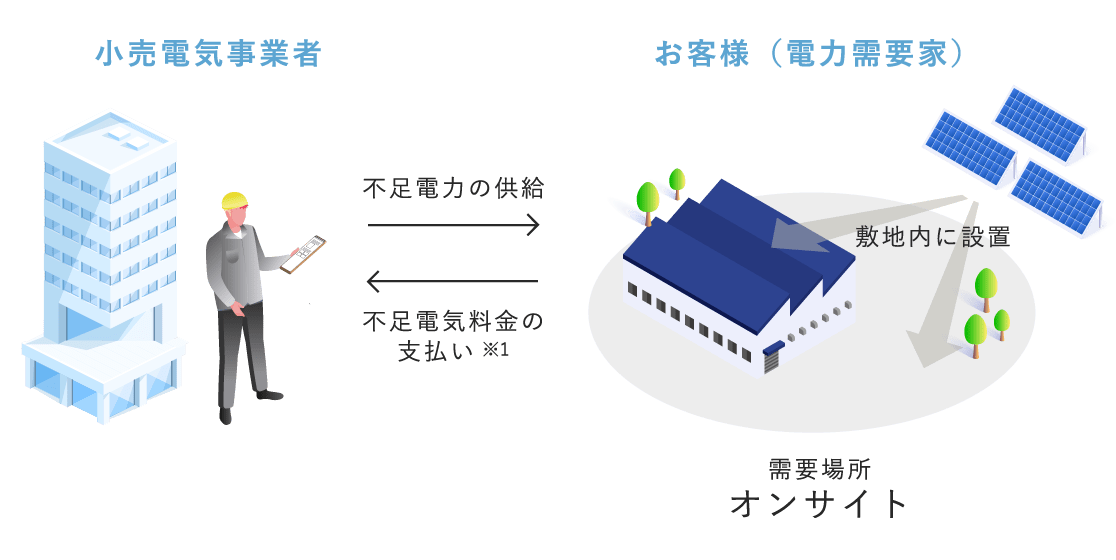 お客様が電気を使用する敷地内に、自ら設備を設置して発電した電気を全量自家消費します。