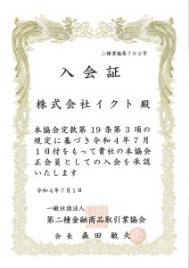 この度、株式会社イクトは、一般社団法人 第二種金融商品取引業協会に正会員として加入しましたことをご報告いたします。