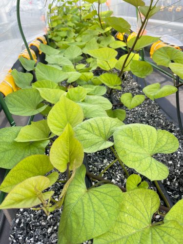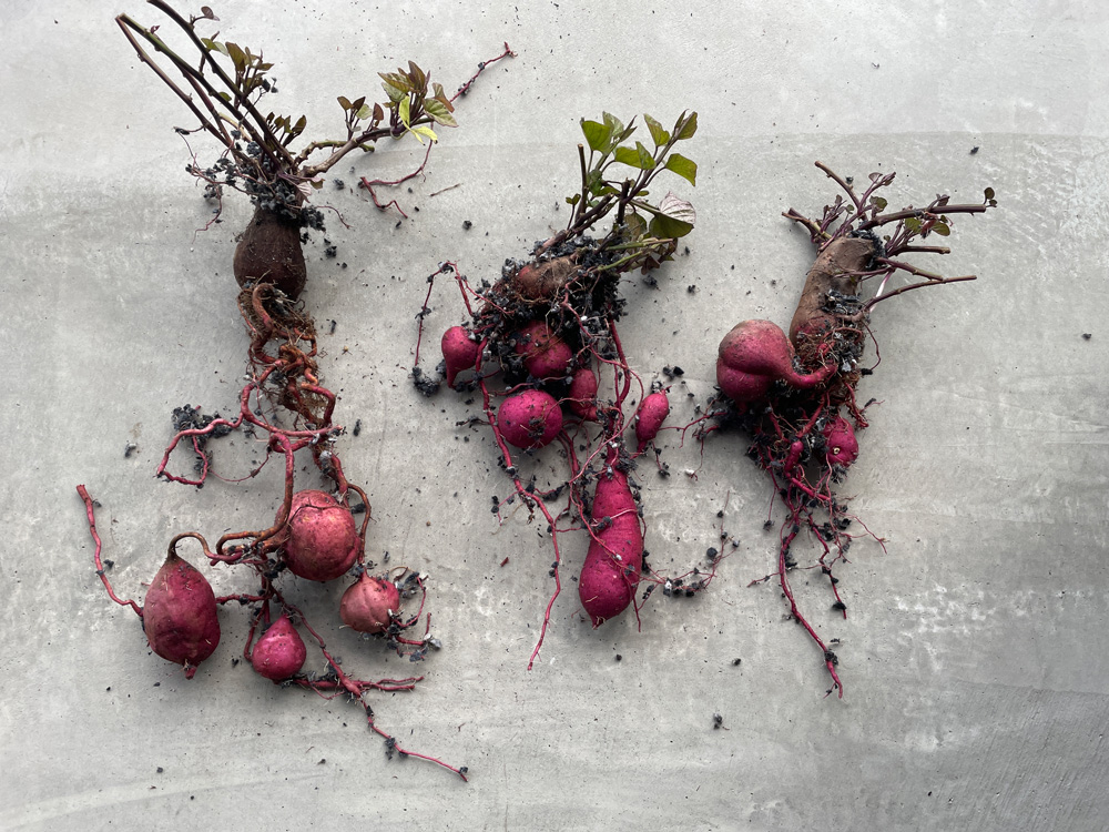 さつまいもの親株 2024.10.07 さつまいもの親株からつるを採り終えたので、役目を終えた親株を掘りました。採ったつるは既に定植し、新たな芋が成長中です。品種は上品な甘さが特徴のシルクスイート。10月下旬から11月上旬ごろ収穫する予定です。 定植後のつるは元気に成長しています。