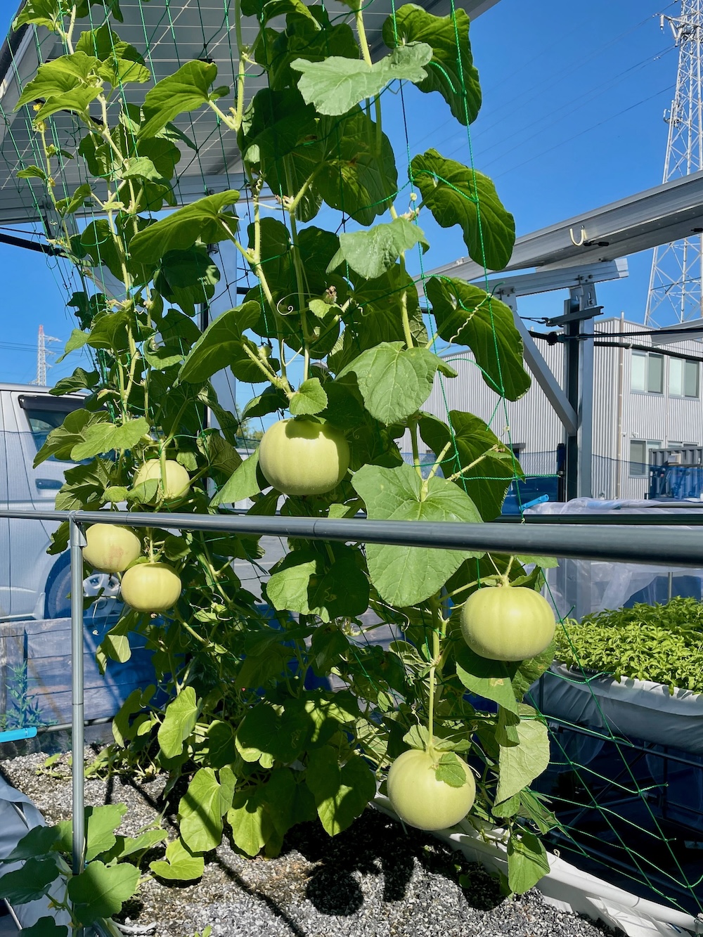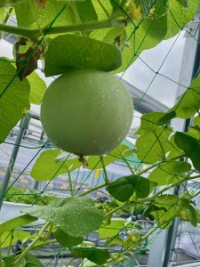 コロンとしたフォルムが可愛らしいミニメロン。まだ小さくてツルツルしていますが、成長すると皮の表面に網目模様が現れます。ネットメロン(網目模様のメロン)といえば高級品種で知られ栽培が難しいイメージがありますが、こちらの品種は家庭の庭やプランターでも育てやすいように改良されたもの。メロンは温暖で乾燥した環境を好むと言われているので、無機質培地にも合いそうです。甘くておいしいメロンができますように。